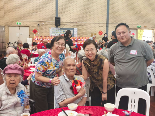 此次系中华社区服务中心第14届新春长者午宴,近六十名90高龄长者、多名百岁老人参加,现场氛围其乐融融,温馨喜庆。